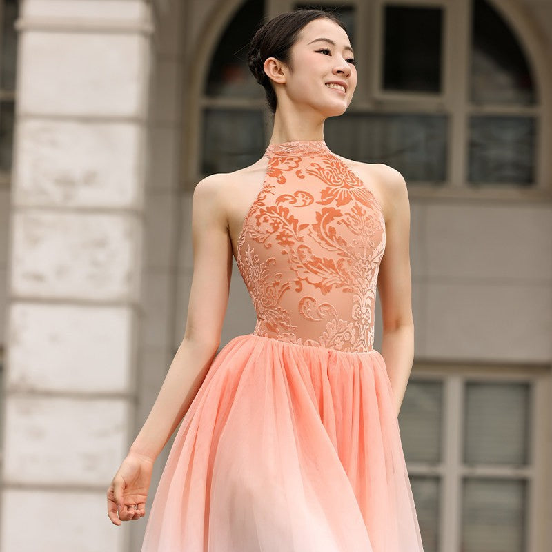 The Waverly Lace Halter Leotard is an elegant and refined piece designed to enhance grace, posture, and fluid movement. Featuring a high halter neckline with delicate lace detailing, this leotard creates a sophisticated silhouette while offering a secure and supportive fit. The seamless blend of mesh and lace textures adds depth and softness, making it visually striking yet minimal.